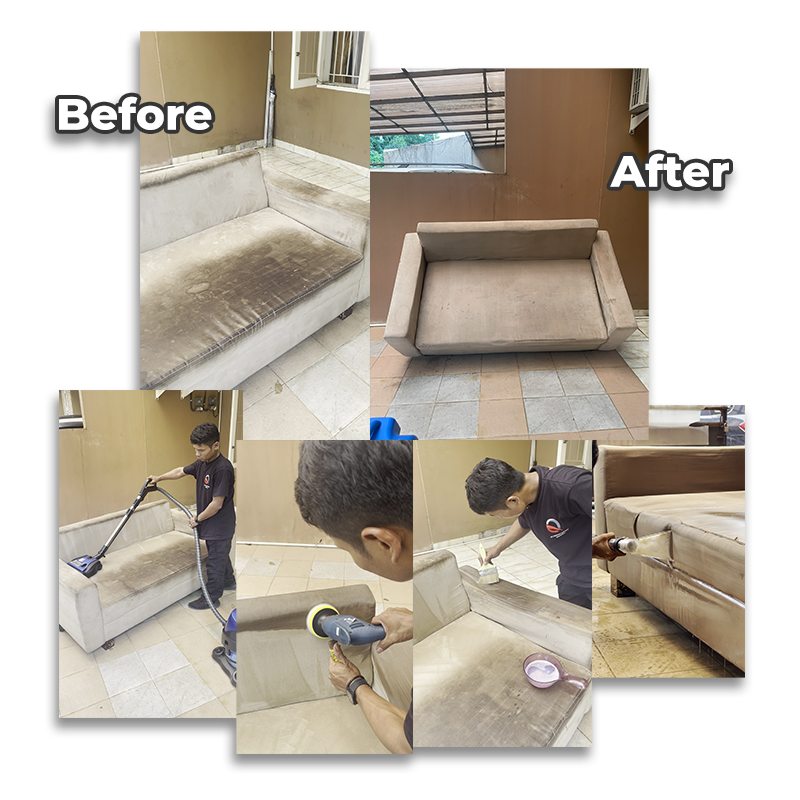 - Kami melakukan deep cleaning + extraction. Sofa bukan cuma wangi, tapi bau apek benar-benar hilang